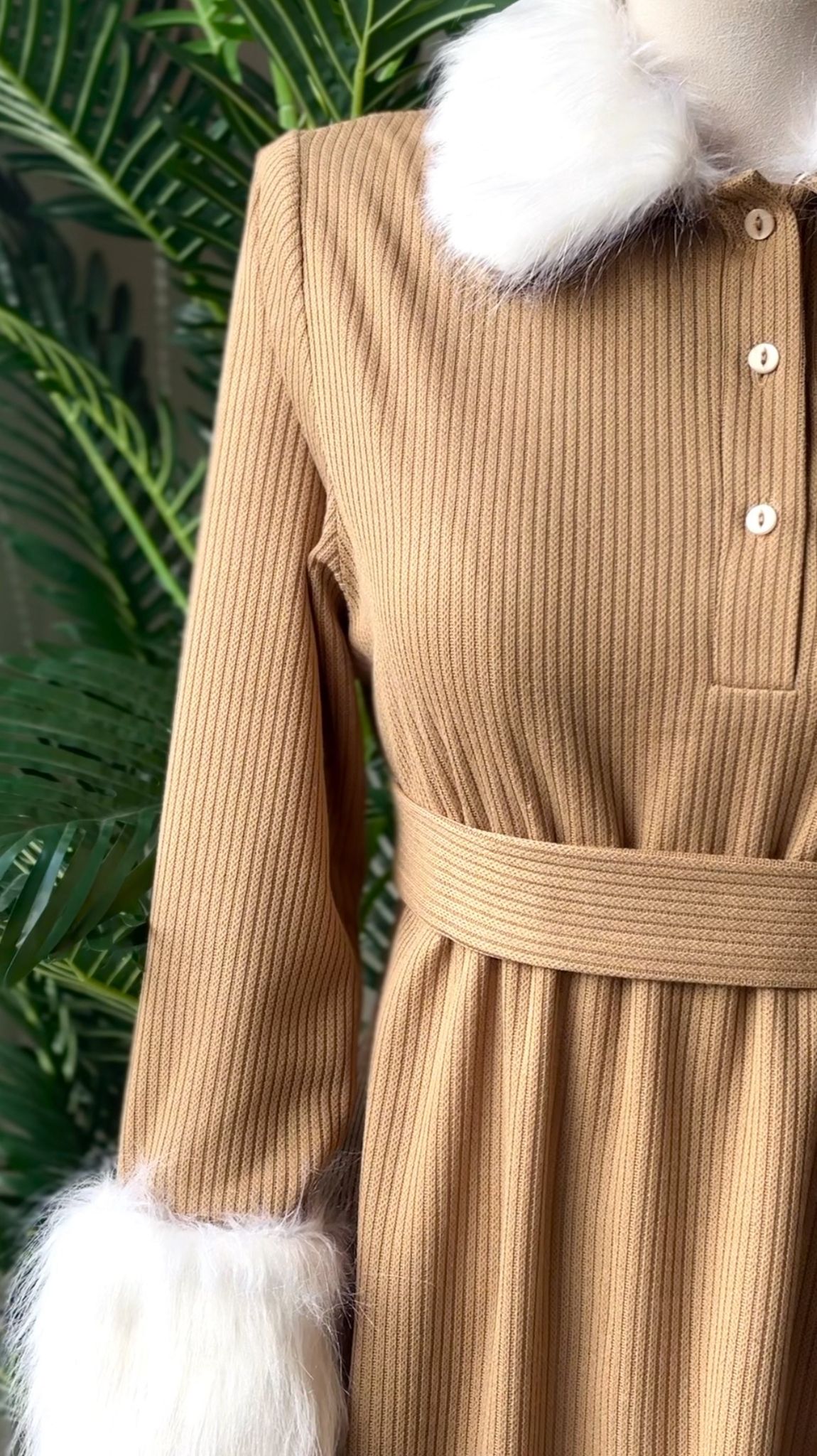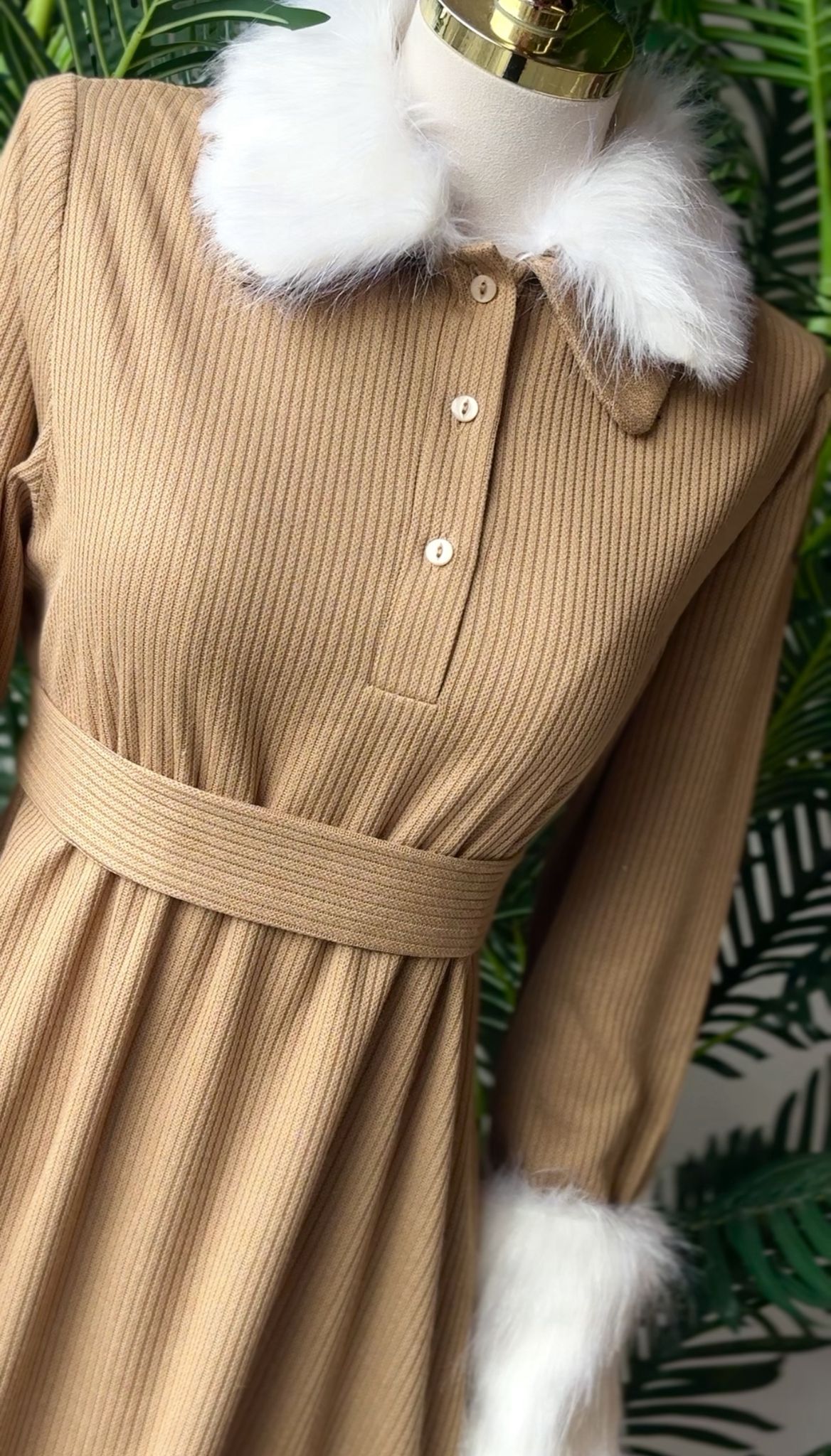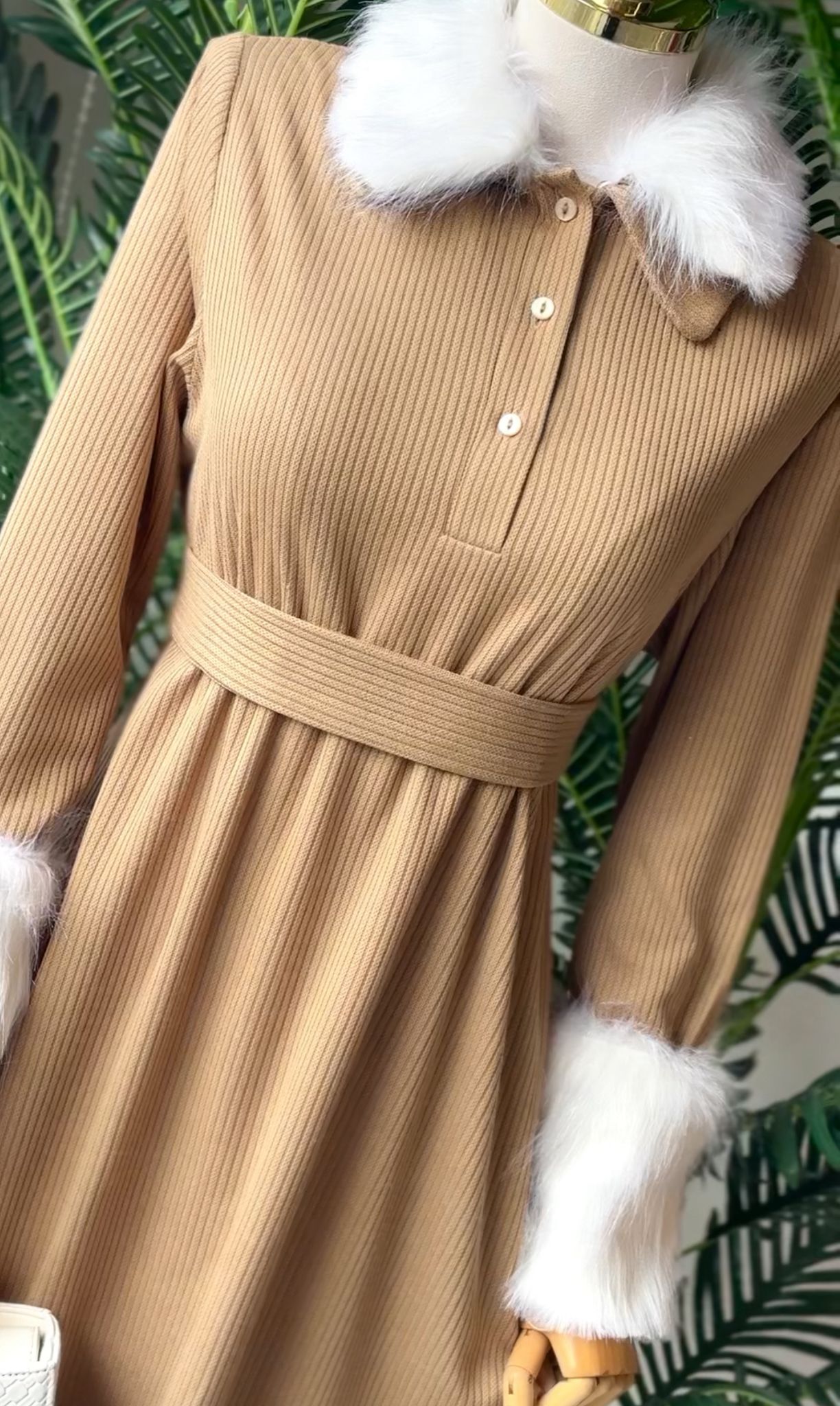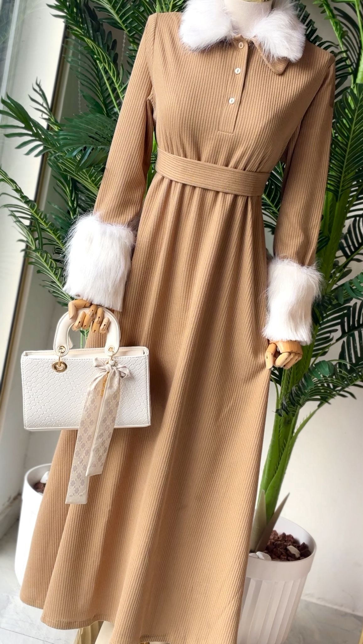 فستان صوف مع فرو طول الفستان ١٣٧ سم