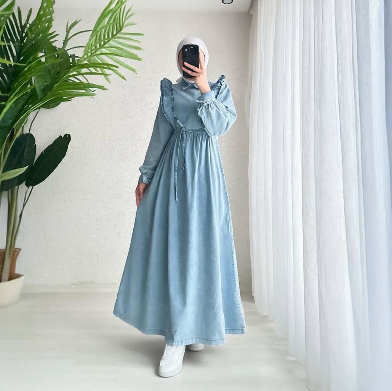 فستان جينز طول الفستان ١٤٠ سم