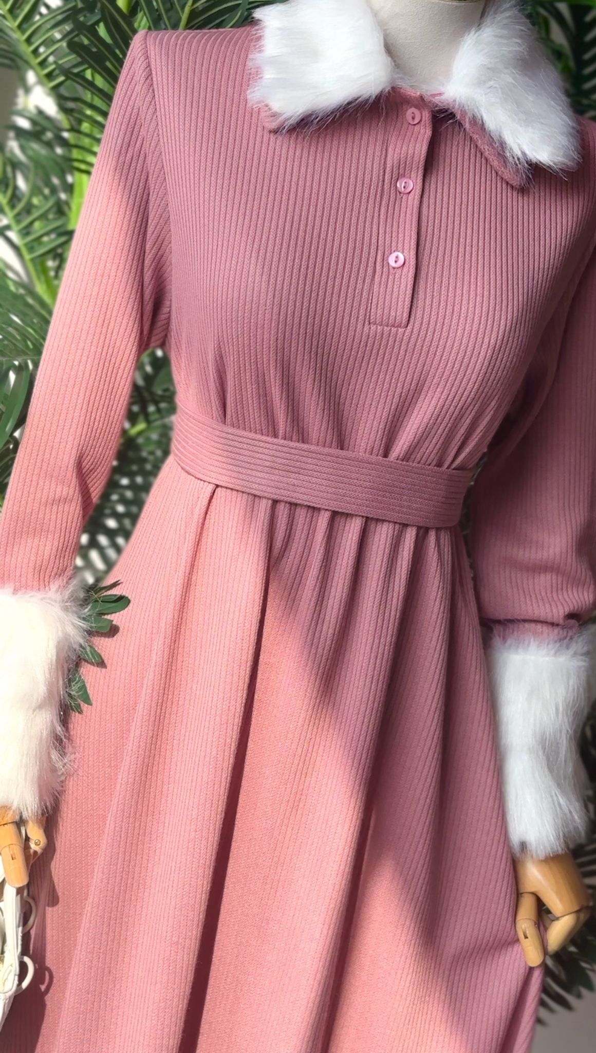 فستان صوف مع فرو