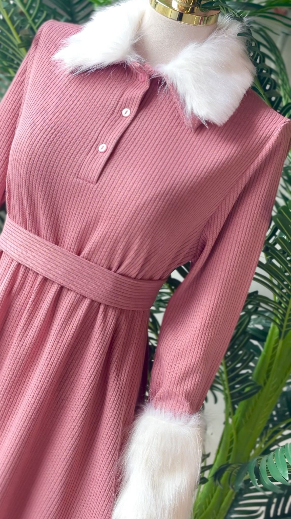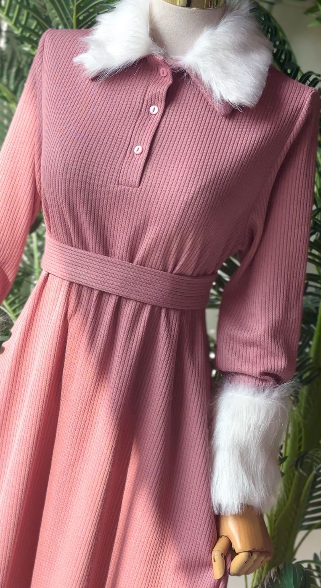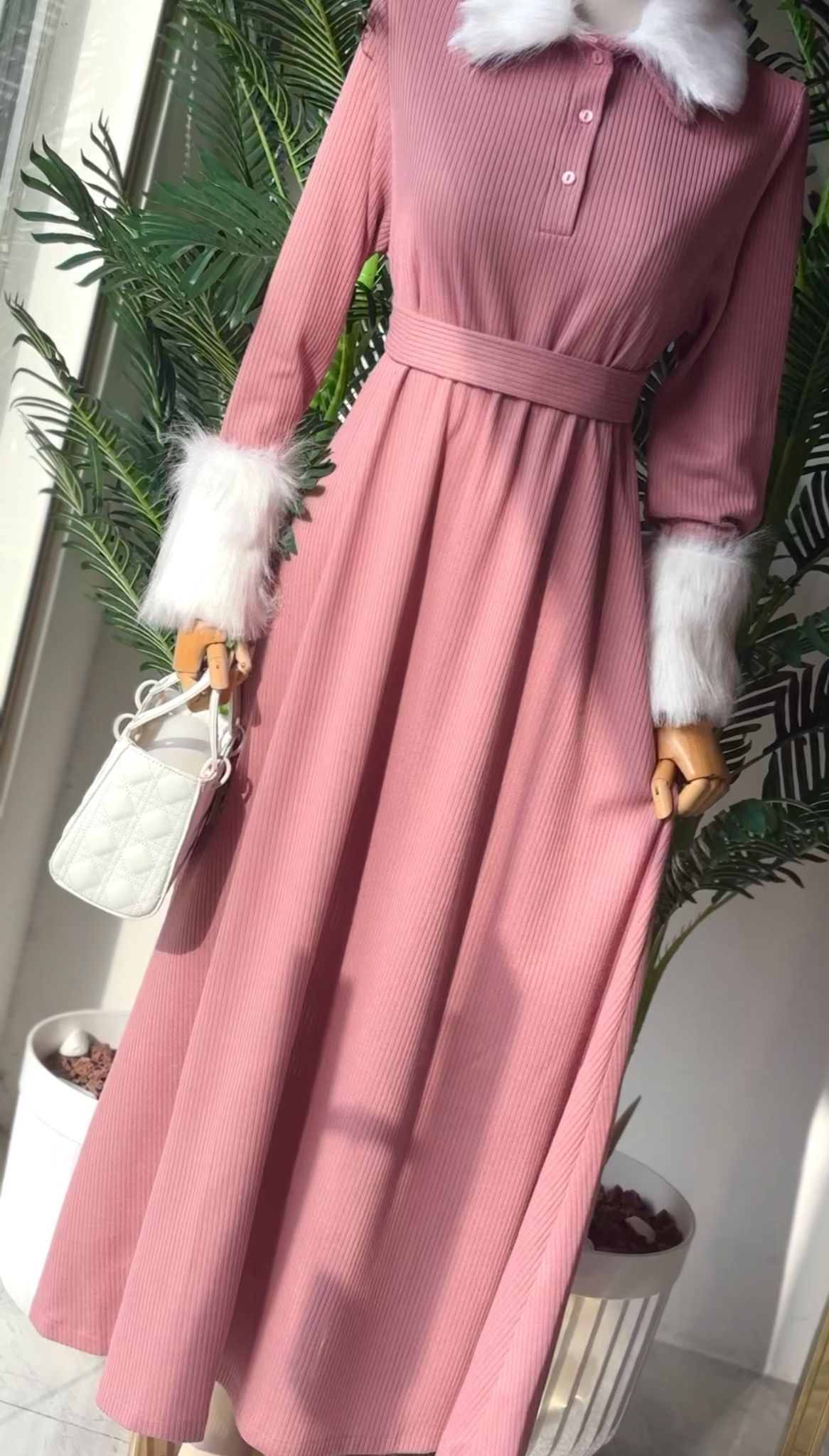 فستان صوف مع فرو طول الفستان ١٣٧ سم